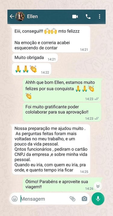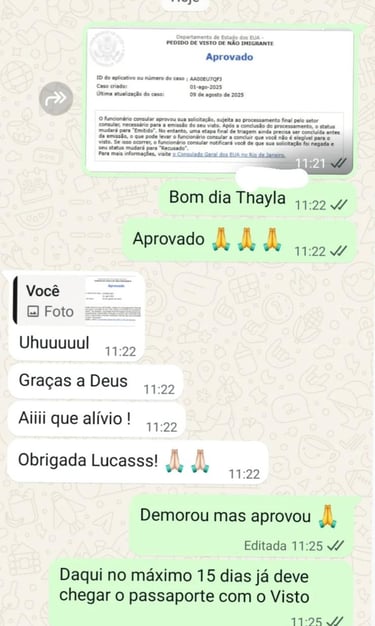 “Sempre tive medo do processo do visto, mas a assessoria foi clara e profissional do começo ao fim.”